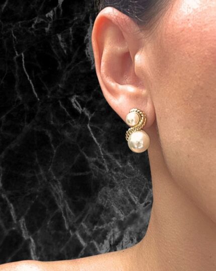 Χρυσό Σκουλαρίκια καρφωτά double pearl